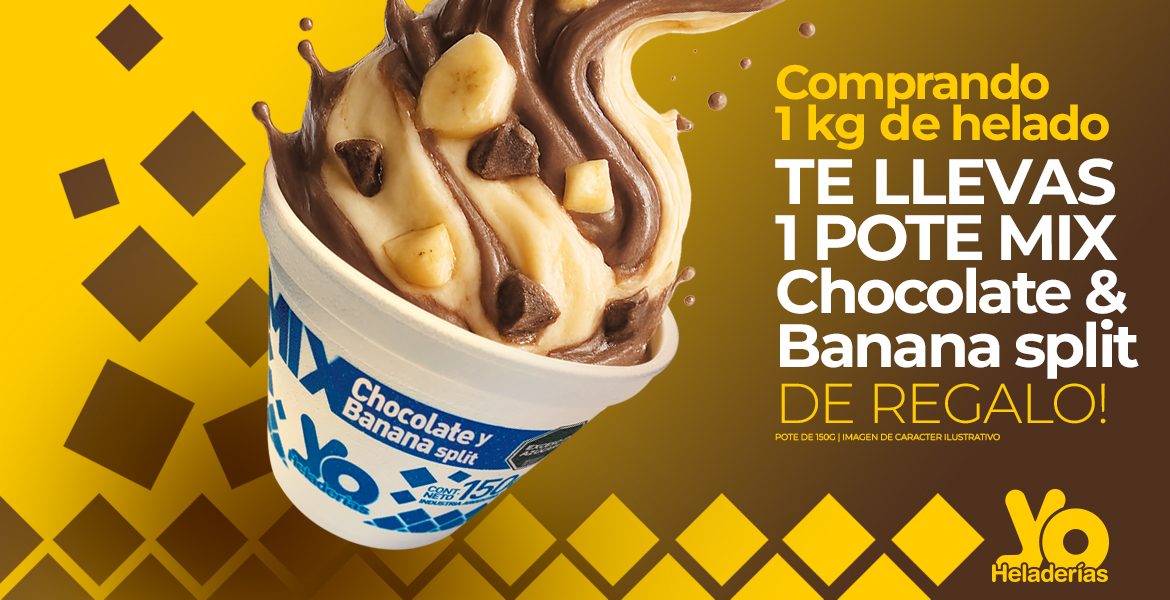 Con la compra de 1 kg. de helado TE REGALAMOS 1 POTE 150G MIX CHOCOLATE & BANANA SPLIT!